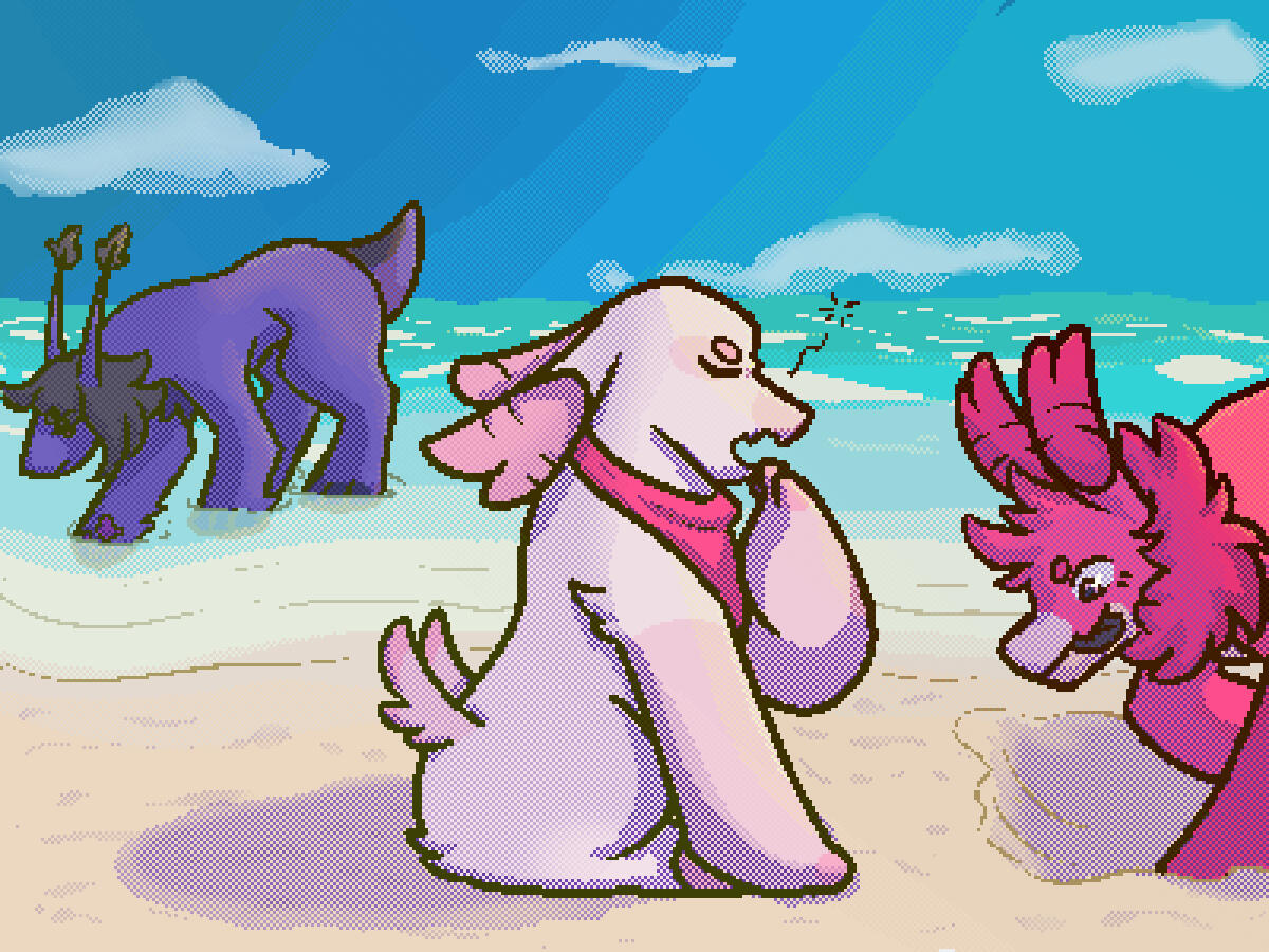 A silly doodle done on one layer with a crunchy brush. The TAT on these is a lot faster than my other art unless you're paying for a lot of them. You may give specific prompts, or let me run wild if you like.
